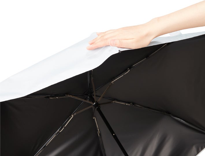 内側のPUコーティングにより、検査基準最高値の紫外線遮蔽率と遮光率、高い遮熱性を実現。さらに「傘の耐久性」を底上げする受骨のポリカーボネートとグラスファイバー骨の組み合わせで強い風にも耐える。太陽の日差し・雨・風への対策が万全な全天候型の傘。