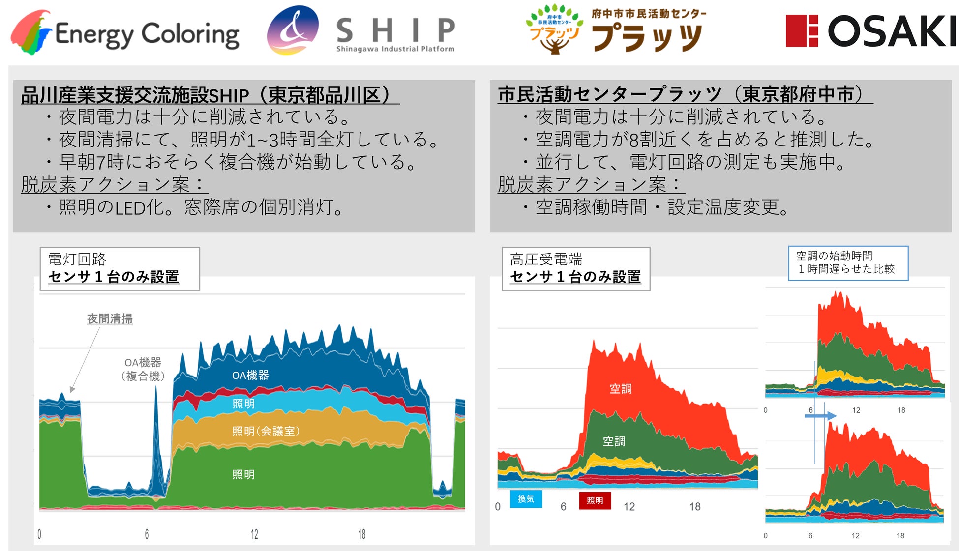 エナジーカラリングは、独自開発した廃棄スマホのリユースIoT技術と、電力用途推定するAI技術を組み合わせた「スマート電流計クラウド」を提供し、商工業事業者向けに企業・施設の設備導入・更新等の省エネ対策の糸口になるソリューションを提供しています。施設に設置した商工業向けAI/IoT電流計 EnergyColoringによって取得されたデータを活用し、施設の省エネ化の提案を行いゼロカーボンシティの実現に向けた自治体の取組を支援します。エナジーカラリングは、この実証実験を通じて、大崎電気工業と共同で環境問題の解決に貢献するソリューションの開発と普及に取り組んでまいります。