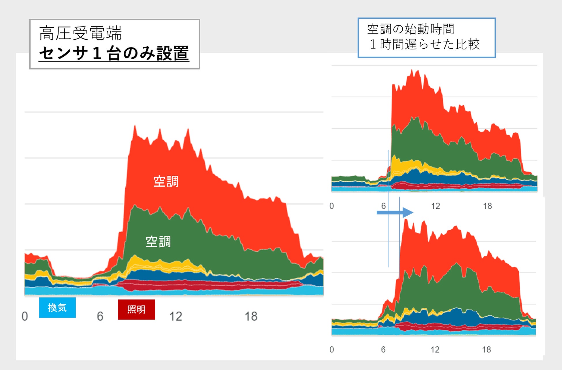 ・空調電力が9割近くを占めると推測した。