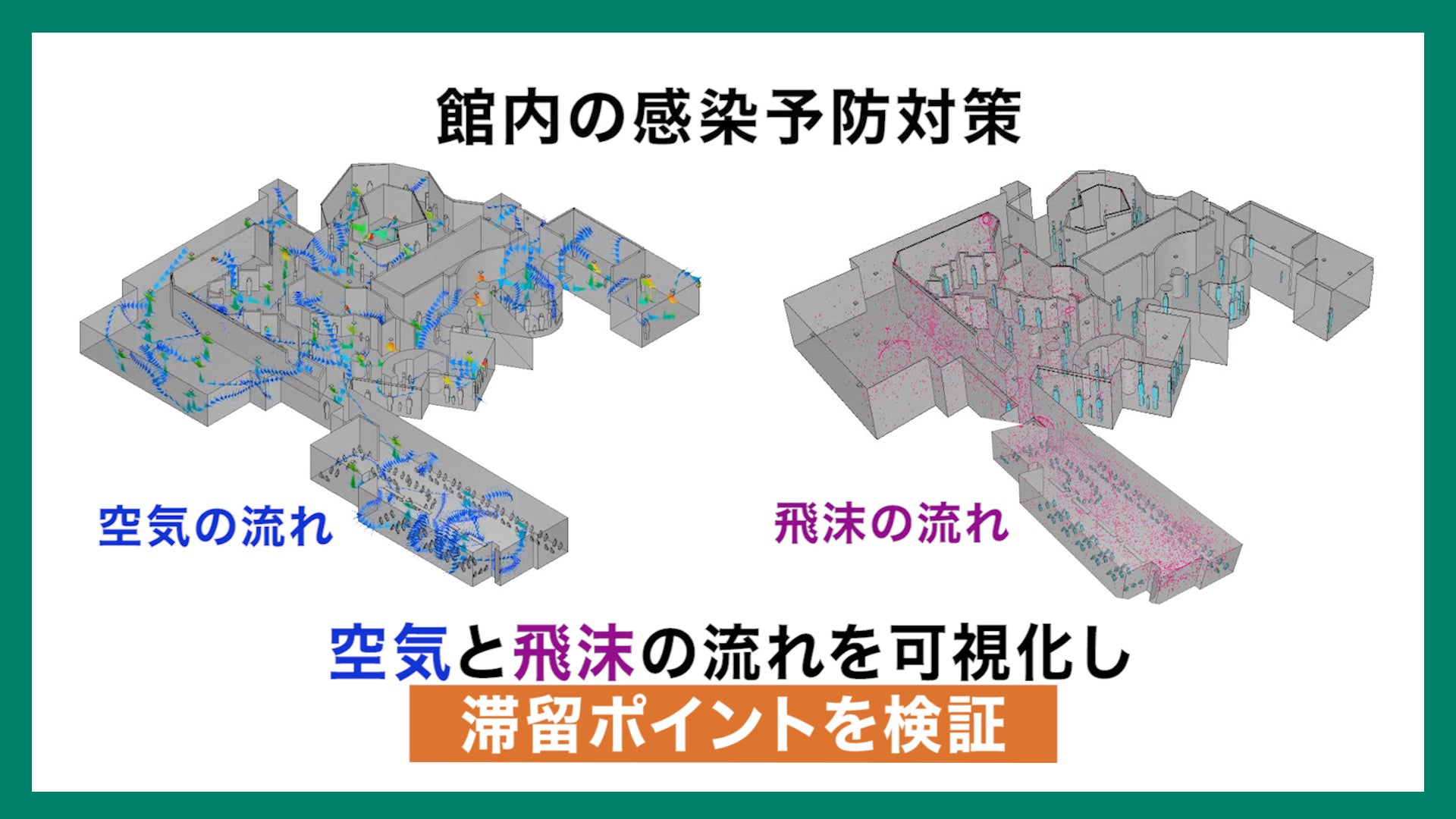 「3D飛沫可視化システム」で、館内の空気が滞留している場所を見える化