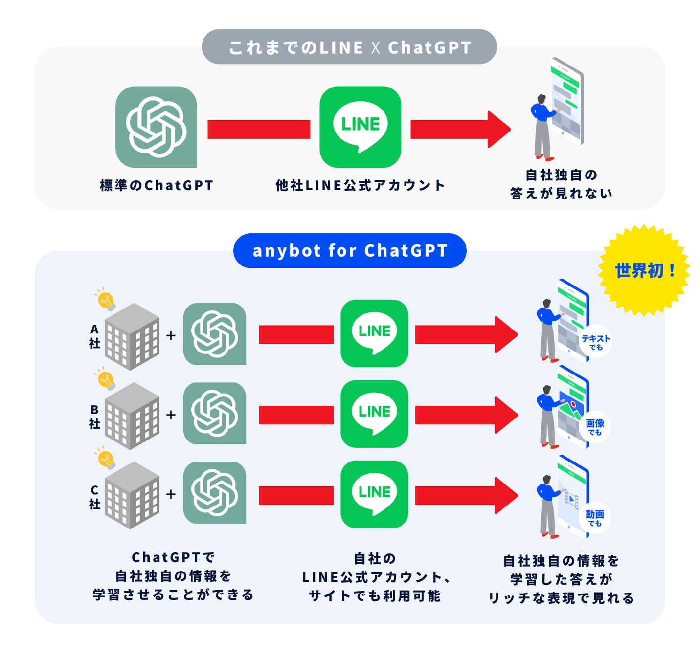 LINEミニアプリ・チャットボットの「anybot」(エニーボット)を提供するエボラニ株式会社は、AIがあたかも人間が対応しているような高度で自然な言葉で、個々の企業独自の情報について受け答えする「anybot for ChatGPT」を4月上旬にリリースします。