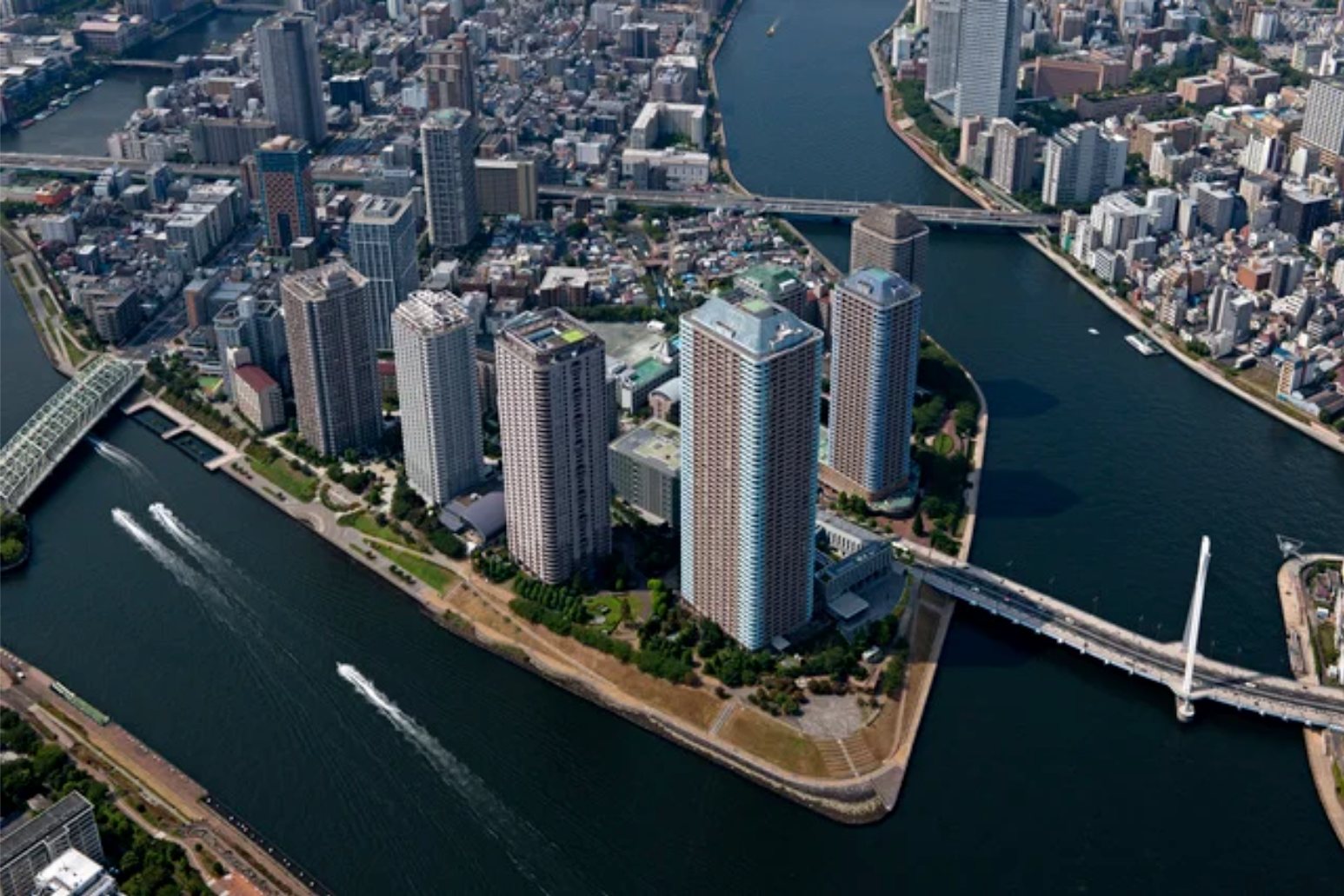 「リバーシティ21 イーストタワーズⅠ」および「リバーシティ21 新川」は東京都中央区佃に所在する超高層住宅を中心としたウォーターフロント住宅エリアです。東京駅や銀座エリアから約2kmと都心に近く、衣食住の施設が揃った高い利便性を備え、川沿いの遊歩道からは四季折々の隅田川の景色とともに東京スカイツリーが一望できます。