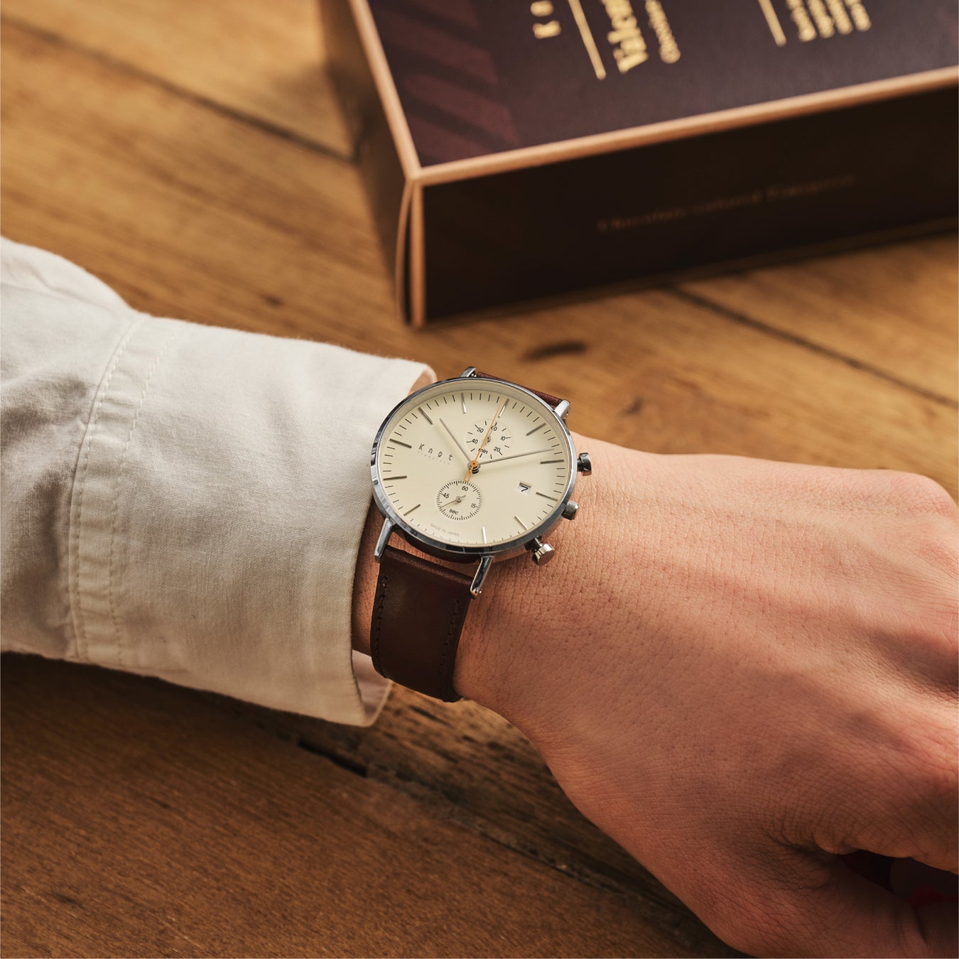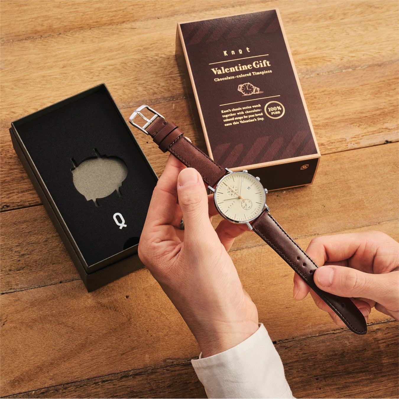 - WATCH GIFT 時計とチョコレート色のレザーストラップのセットギフト。時計のフェイス違いで3種類からお選びいただけます。