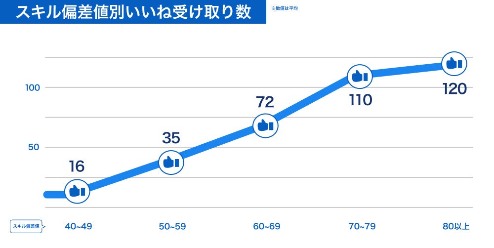 <スキル偏差値別いいね受け取り数>
