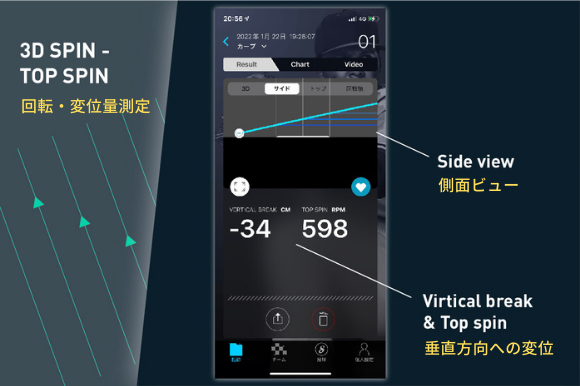 ・ ボール軌道、球速、回転軸、回転数などを分析し、野球を科学的で楽しむ!