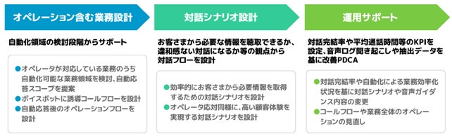 ボイスボットの有効活用に向けた業務アセスメントから、対話シナリオ・業務設計、運用までワンストップで提供