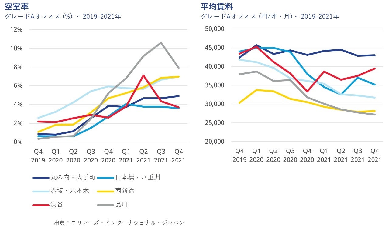 大手総合不動産サービス・投資運用会社であるコリアーズ(NASDAQ, TSX: CIGI)は、本日、「東京オフィスマーケットレポート|2021年第4四半期(10‐12月期)東京主要5区・グレードAオフィス 」を発表しました。当レポートは、コリアーズ・ジャパンが、東京主要5区(千代田区・中央区・港区・新宿区・渋谷区)のグレートAオフィスビル※1の賃貸オフィス市況と今後の見通しについて、当社が独自に収集したデータに基づいて分析したものです。