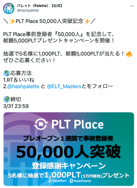 キャンペーンURL:https://twitter.com/hashpalette/status/1507215397749428227?s=20&t=K5FJhuuU3Bw83-KOFCZo1Q