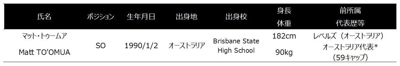 トゥームア選手はオーストラリア代表・ワラビーズのSO/CTBとして長年活躍。ラグビーワールドカップ2019日本大会にも出場し、同代表で2番手となる18得点をあげました。