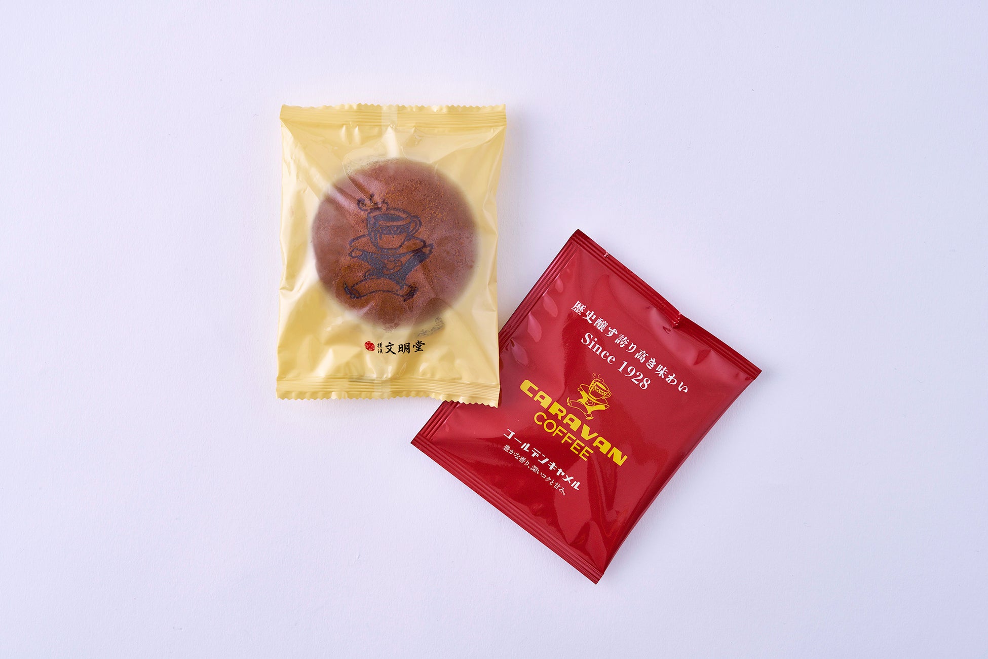 【商品名】 キャラバンコーヒー焼印入り横浜文明堂三笠山(どら焼き)×DRIPACK®︎セット