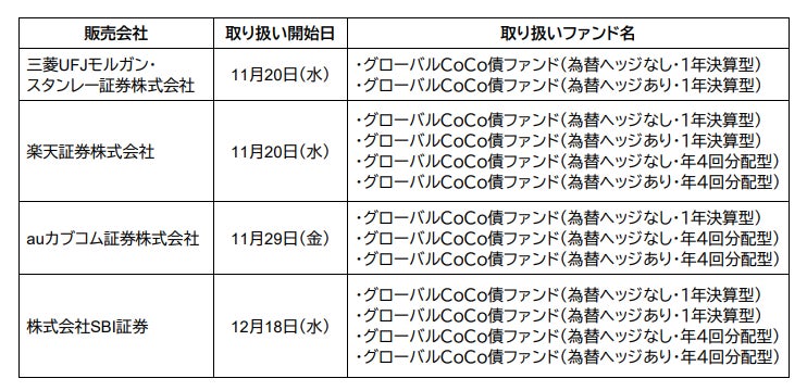「グローバルCoCo債ファンド(為替ヘッジなし・1年決算型)/(為替ヘッジあり・1年決算型)/(為替ヘッジなし・年4回分配型)/(為替ヘッジあり・年4回分配型)」の取り扱いについては以下の通りです。