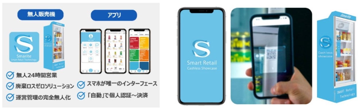 厚生労働省が定める「HACCP」に沿った衛生管理への対応に加え、特殊なアルゴリズム解析による物体自動識別技術により、ショーケースから取り出した商品を自動で識別しドアを閉めると決済アプリにて「自動」で決済して購入が可能な無人販売機です。国内初の無人小売基幹システムとして遠隔の温度管理や在庫管理などに加え、消費期限管理や売価の変更なども遠隔で管理できるシステムです。従来の自販機とは異なりパッケージの大きさや規格の制限なく陳列が可能です。