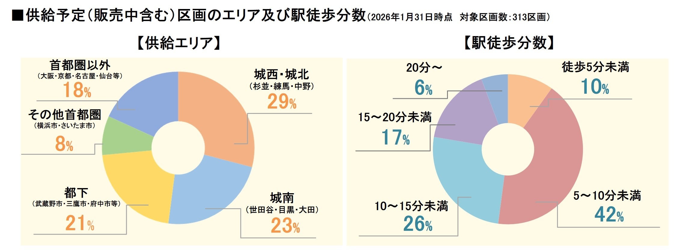 当社が今後供給予定の分譲宅地は、城南エリア(目黒区・世田谷区・大田区)、城西・城北エリア(中野区・杉並区・練馬区)、東京都下(武蔵野市・三鷹市等)、横浜市、さいたま市等において、都心部へのアクセスが良好、且つ最寄り駅からも徒歩5~15分圏内が中心※1の利便性が高い立地に誕生します。