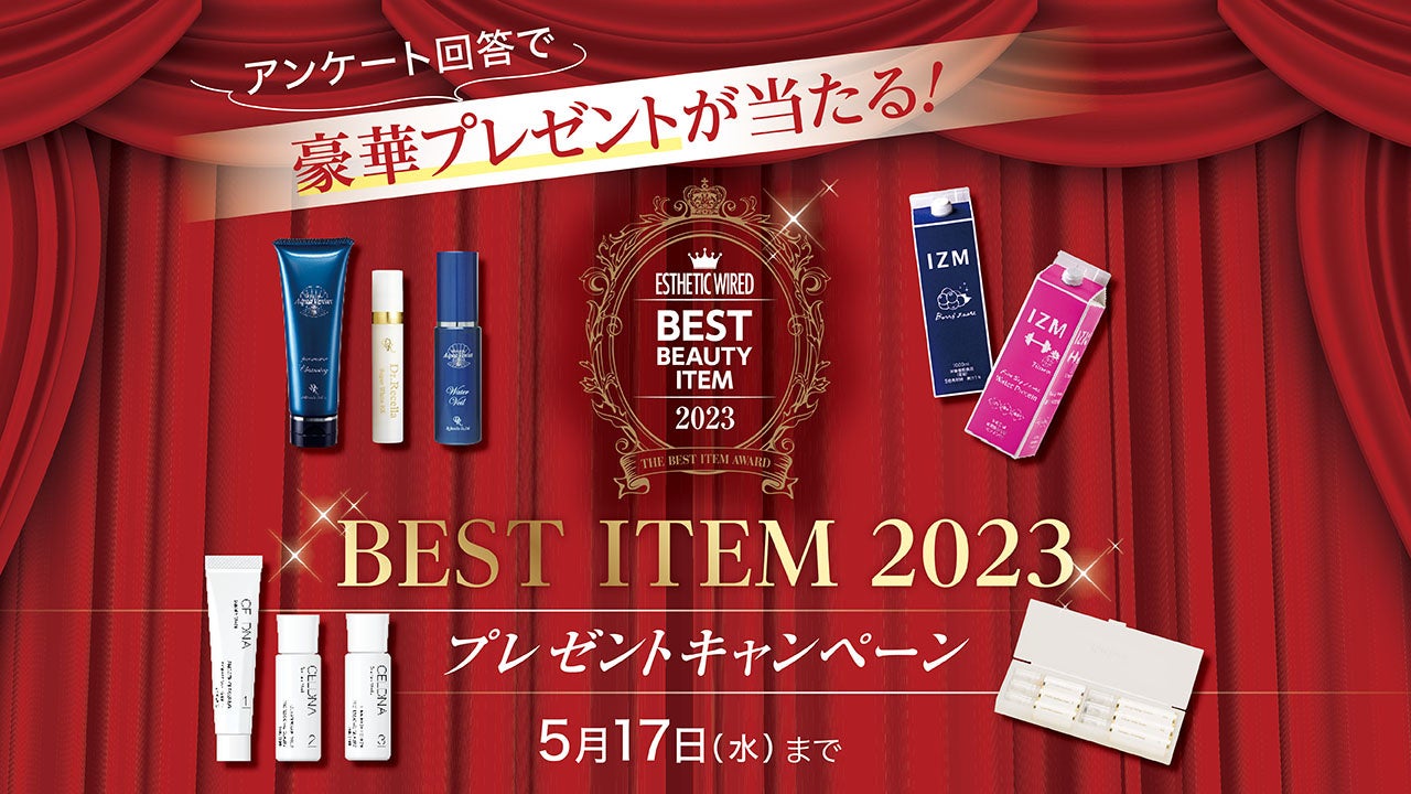 株式会社美容経済新聞社(本社:東京都港区 代表取締役:花上哲太郎、以下当社)は、全国のエステサロンへのアンケート結果からエステティックサロンで売り上げを伸ばしたサービスや商品を選出するアワード『ベストアイテム2023』の投票受付を開始しました。今年は全国のエステサロンを対象に、投票した方の中から抽選で「ベストアイテム2022」受賞製品をはじめ、豪華プレゼントが総勢120名に当たるキャンペーンを開催いたします。
