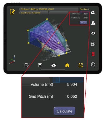 計測した点群から「快測Scan」で簡易な土量計算ができます。