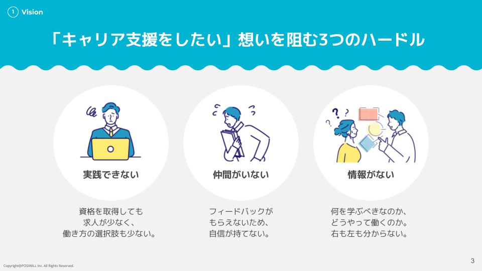 こうした「想いはあるのに形にできていない」という現状に対して、「実践して学び続ける」環境を提供すべく、今回「ポジウィル認定講座」のリリースに至りました。