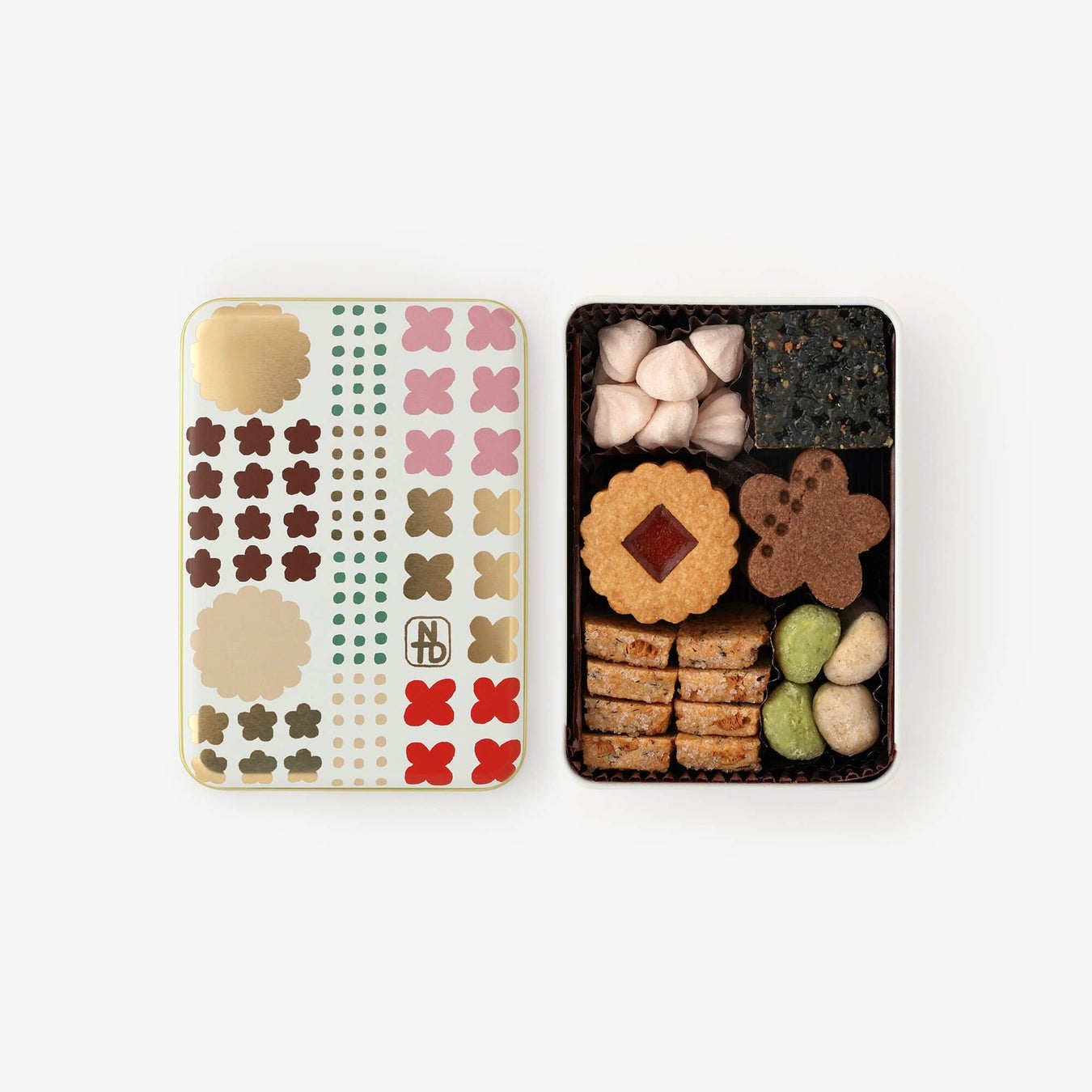 京都の干菓子製造から始まり、大正元(1912) 年に6 代目が大阪で創業した和洋菓子メーカー。黒豆、栗、大納言小豆などの良質素材を使った、贅沢なクッキー缶でコラボ。