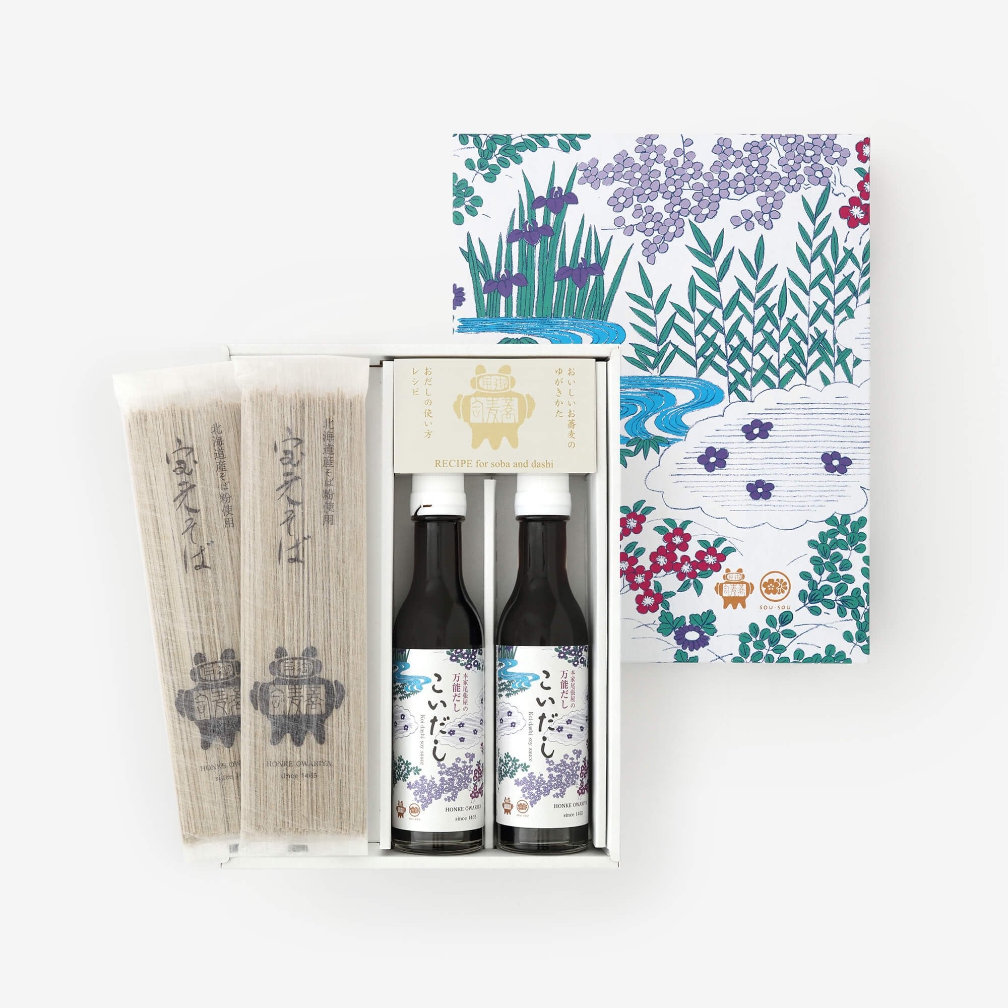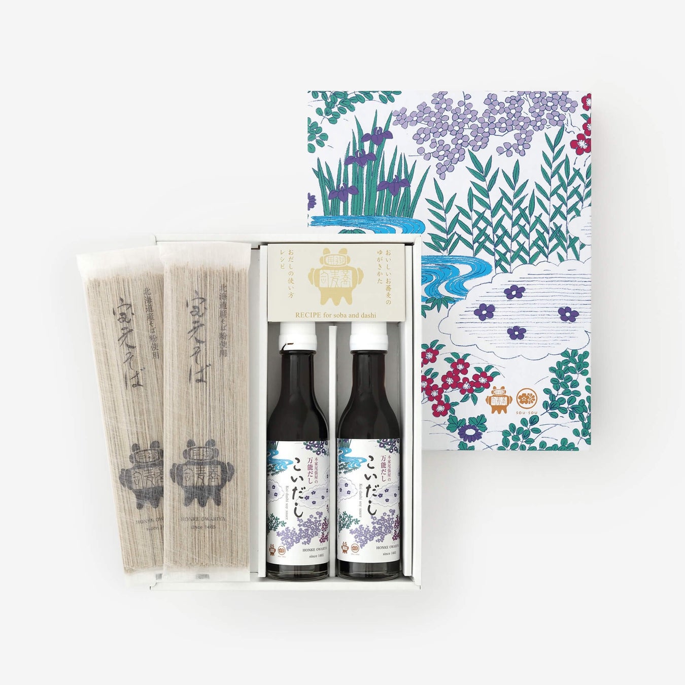 室町時代の創業から550 年以上続く、京都で一番古い蕎麦屋。北海道産の蕎麦粉を使用した乾麺宝来そばと、化学調味料・保存料無添加の万能濃縮うすだしのセットでコラボ。