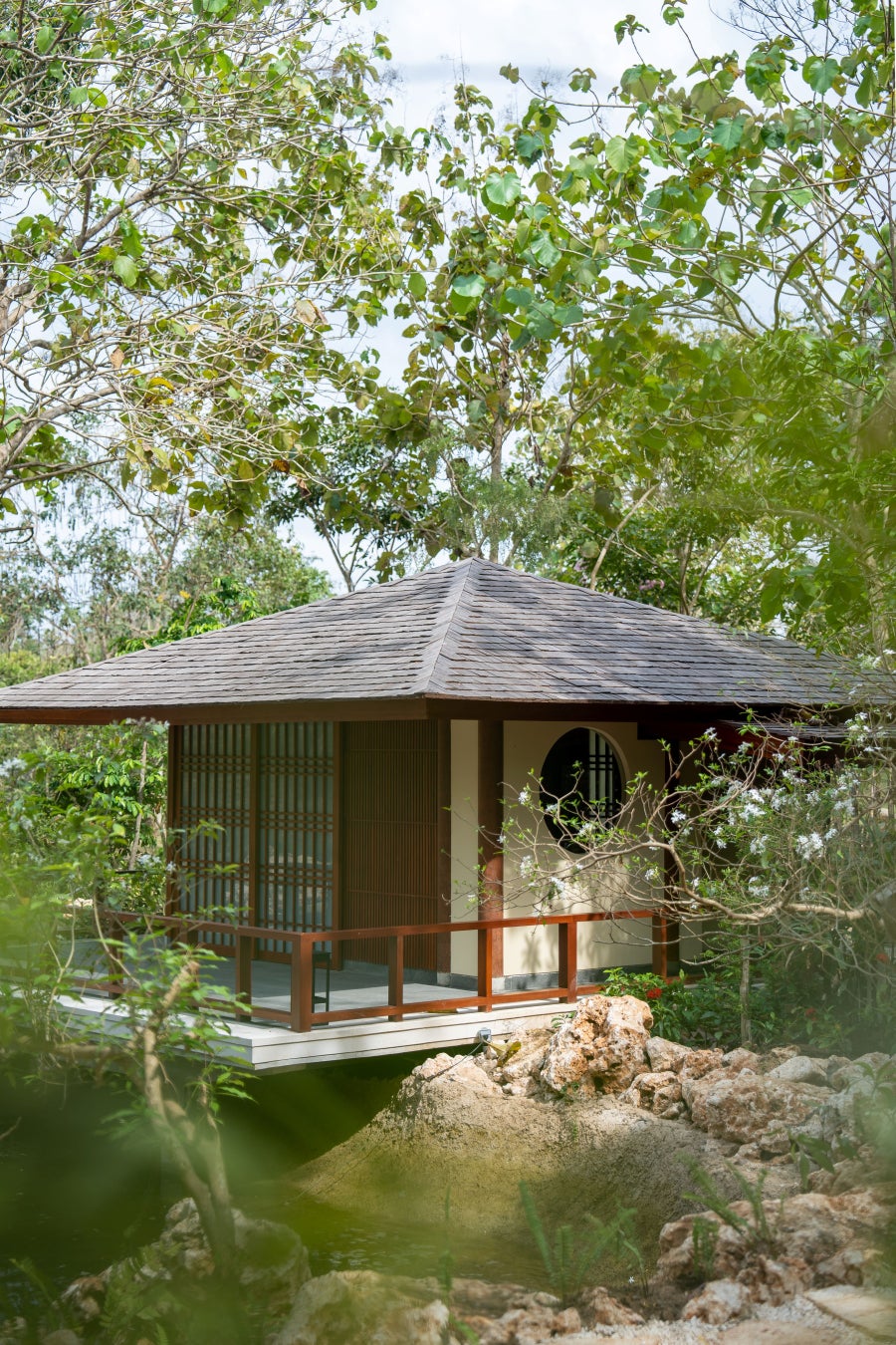 テヴァナガーデンは、日本の大阪に拠点を置くSAHAランドスケープ設計事務所の長谷川一真氏(共同代表・ランドスケープアーキテクト、京都芸術大学教授)と城水麻衣子氏(共同代表・ランドスケープアーキテクト)によって設計されました。バリの自然美と日本の庭園技術が美しく融合しています。庭園はバリの自然を讃えつつ、日本の影響もさりげなく取り入れており、道や構造物の正確さ、細部へのこだわりが感じられます。シンプルさと自然美が調和するこの空間には、テラス状の風景、静かに流れる小川、輝く滝、そして地元の白い石灰岩の特徴的な地形が広がり、瞑想的で落ち着いた雰囲気が漂います。これらの要素が一体となり、訪れる人々に癒しの効果をもたらします。