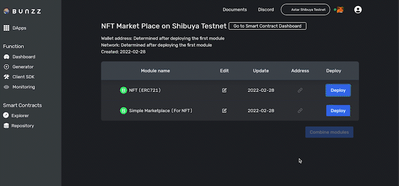 これによりBunzzの開発者ユーザは、DApp開発用のスマートコントラクトを簡単に構築できるだけでなく、Astar系ネットワークへのデプロイをワンストップかつノーコードで行えます。