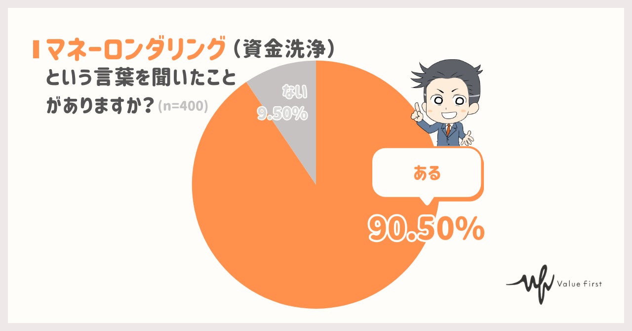 デジタルマーケティングの株式会社バリューファースト(本社:神奈川県横浜市、代表取締役:佐野 聡士、以下バリューファースト)が運営する「ゼニエモン」では10代以上の男女400名を対象に、マネーロンダリングの認識度についてアンケートを実施しました。