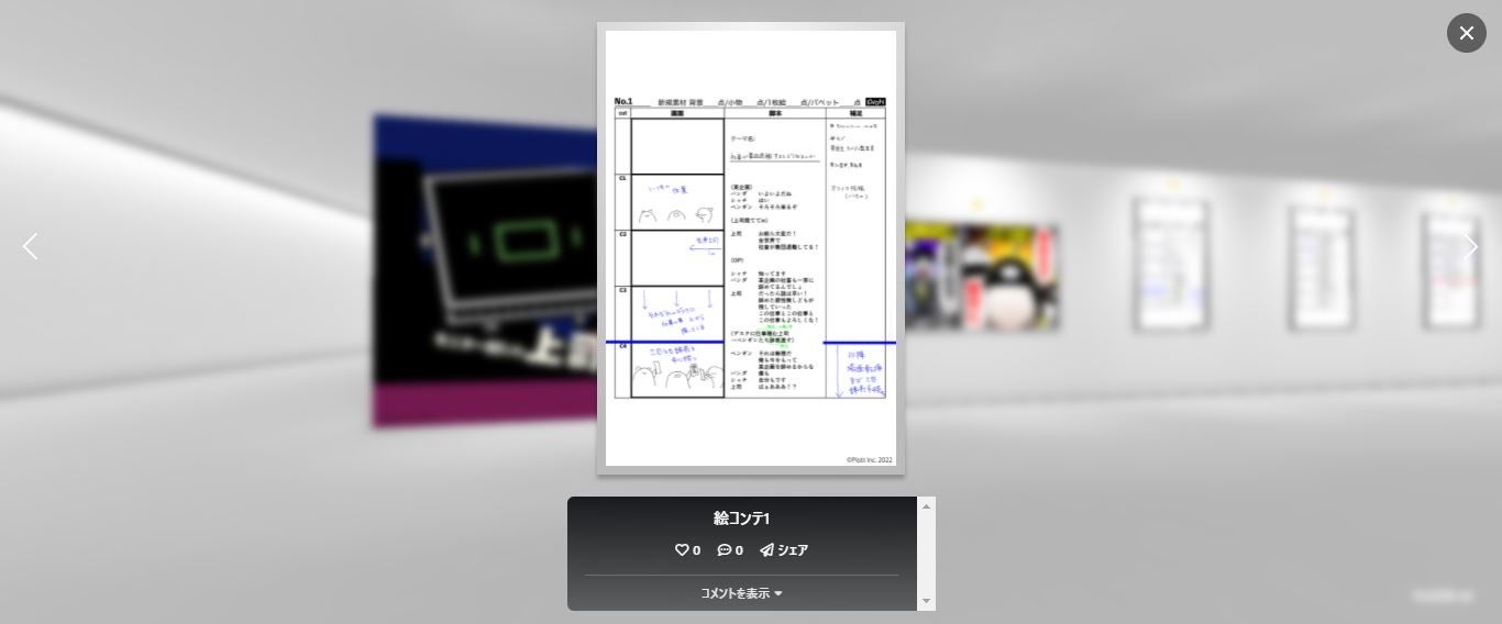 初公開となる絵コンテや、3周年記念イラストの展示をオンライン上で閲覧いただけます。また、通販にて3周年記念グッズの販売を行います。