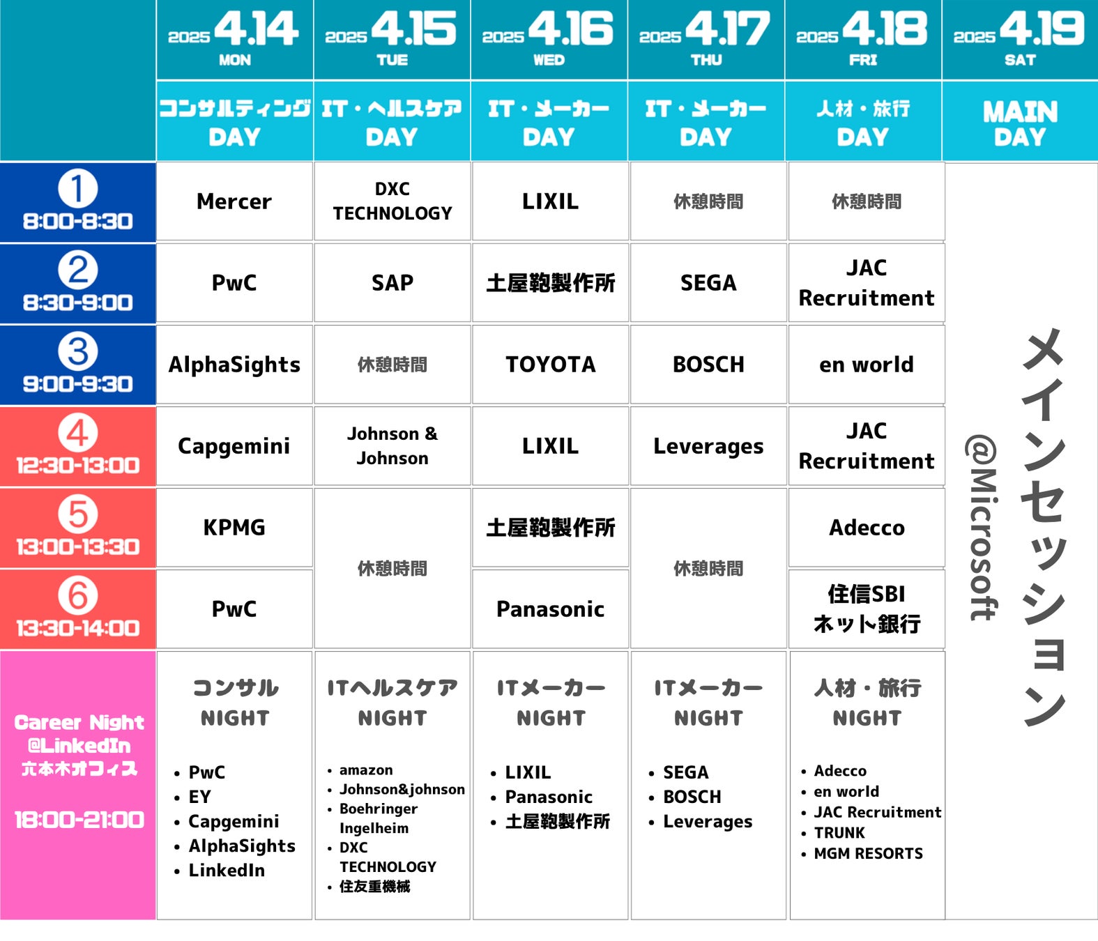 新卒向け最大級のキャリアイベント「LinkedIn Student Career Week2025」を4/14~19に開催いたします。学生4,000名、企業40社のご参加を予定しております。