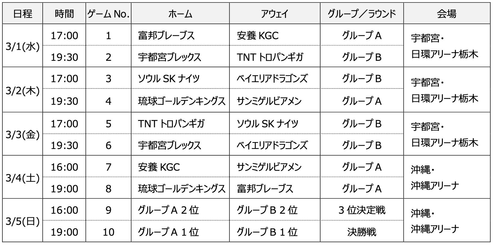 「東アジアスーパーリーグ」(East Asia Super League、以下:EASL)は、2023年3月1日から5日にかけて宇都宮と沖縄で開催する「EASL Champions Week」の全日程を発表します。