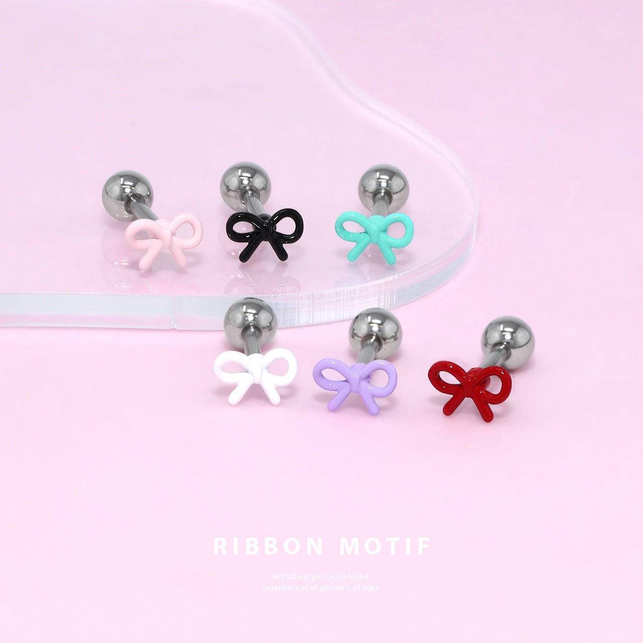 ④カラー豊富なプチリボンピアス