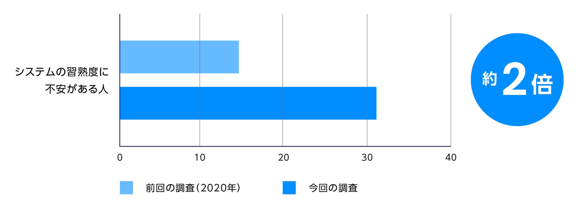 デジタルツールの習熟度に不安を抱くユーザーは、2年で2倍に増加