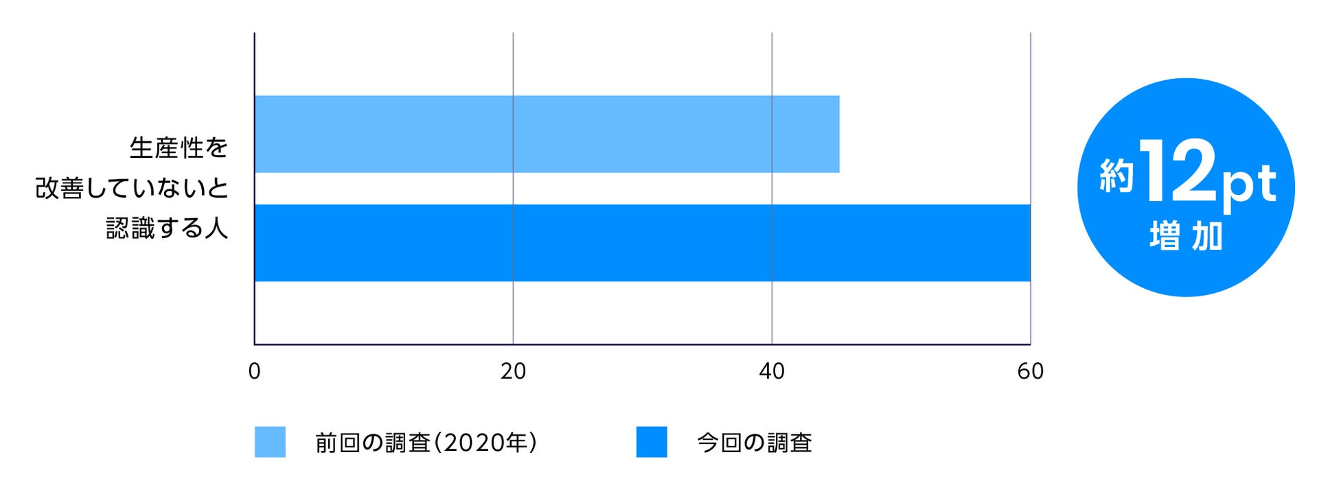 デジタルツールの導入が生産性向上につながっていないと認識する人は60%以上で、前回調査*と比較すると約12ポイント増加