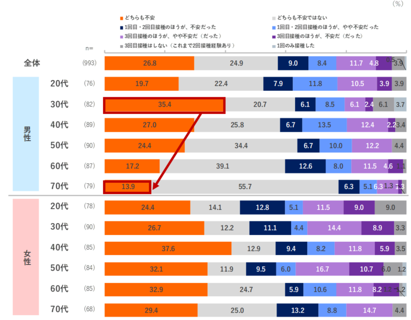 7)ワクチン接種の不安の比較:1回目・2回目接種と3回目接種(ブースター接種)