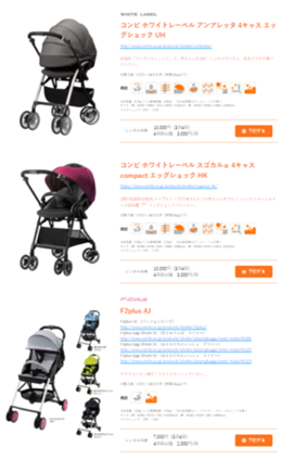 二つ目は「StrollerTrip」です。ーCombi社と提携し高級ベビーカーの配達レンタルサービスで、お子様と快適にお出かけすることが出来るシェアリングサービスです。