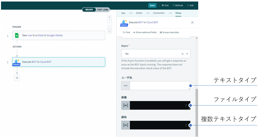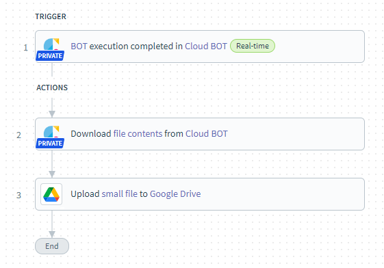 自動操作中にBOTが取得したファイルをWorkato側で受け取る事ができます。