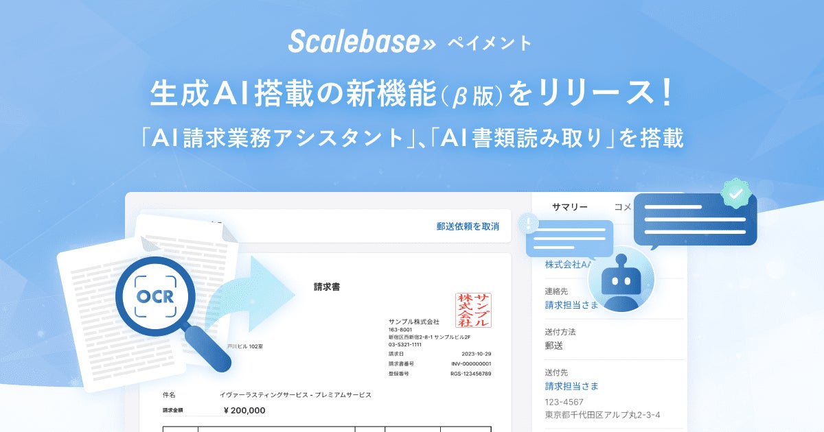 請求書作成システム「Scalebase ペイメント」が大幅アップデート!生成AI搭載の新機能「AI請求業務アシスタント」「AI書類読み取り」β版をリリース