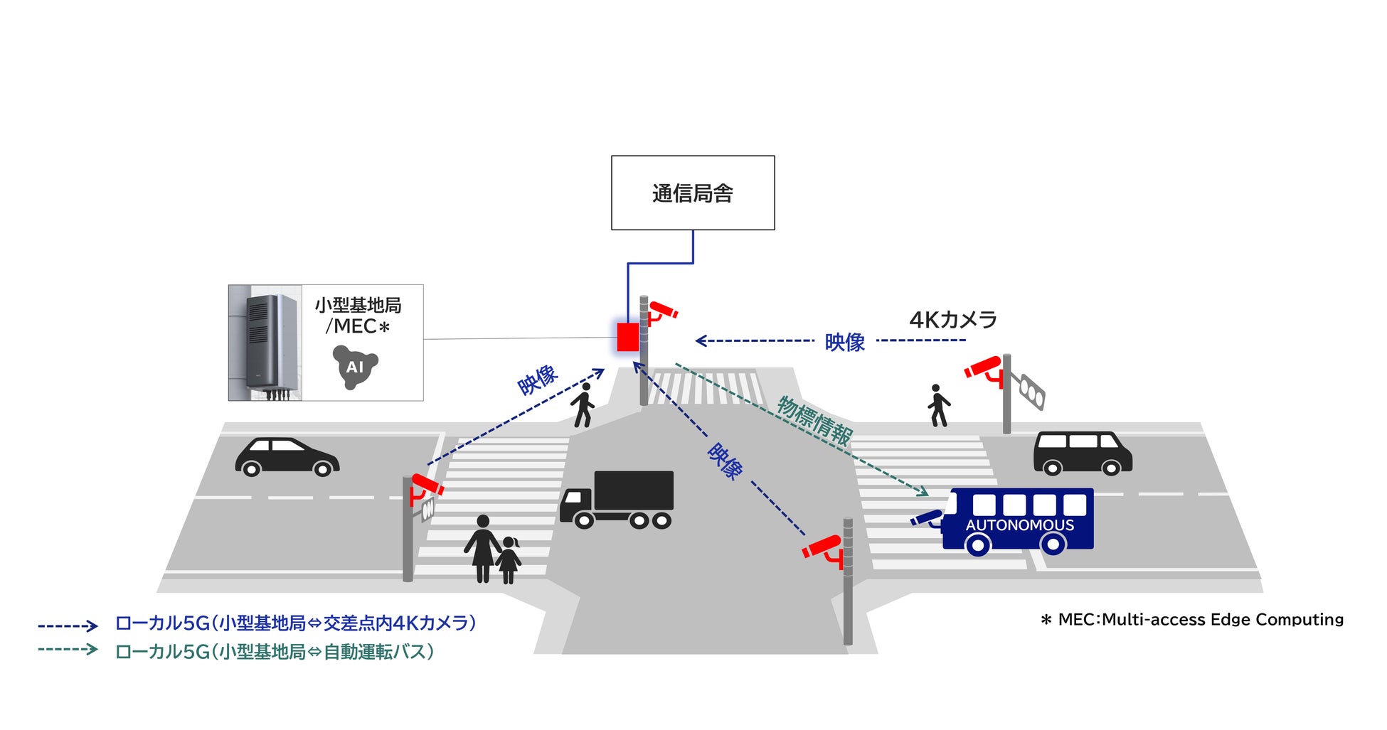 自動運転技術の本格導入に向けては、一般車や歩行者等の多様な交通参加者が混在する道路空間において、安全面の確保が必要不可欠と言えますが、自動運転車に搭載された車両センサのみでは、自動運転車周辺の交通状況の把握が困難な場合も多く、本格導入に向けた課題となっています。