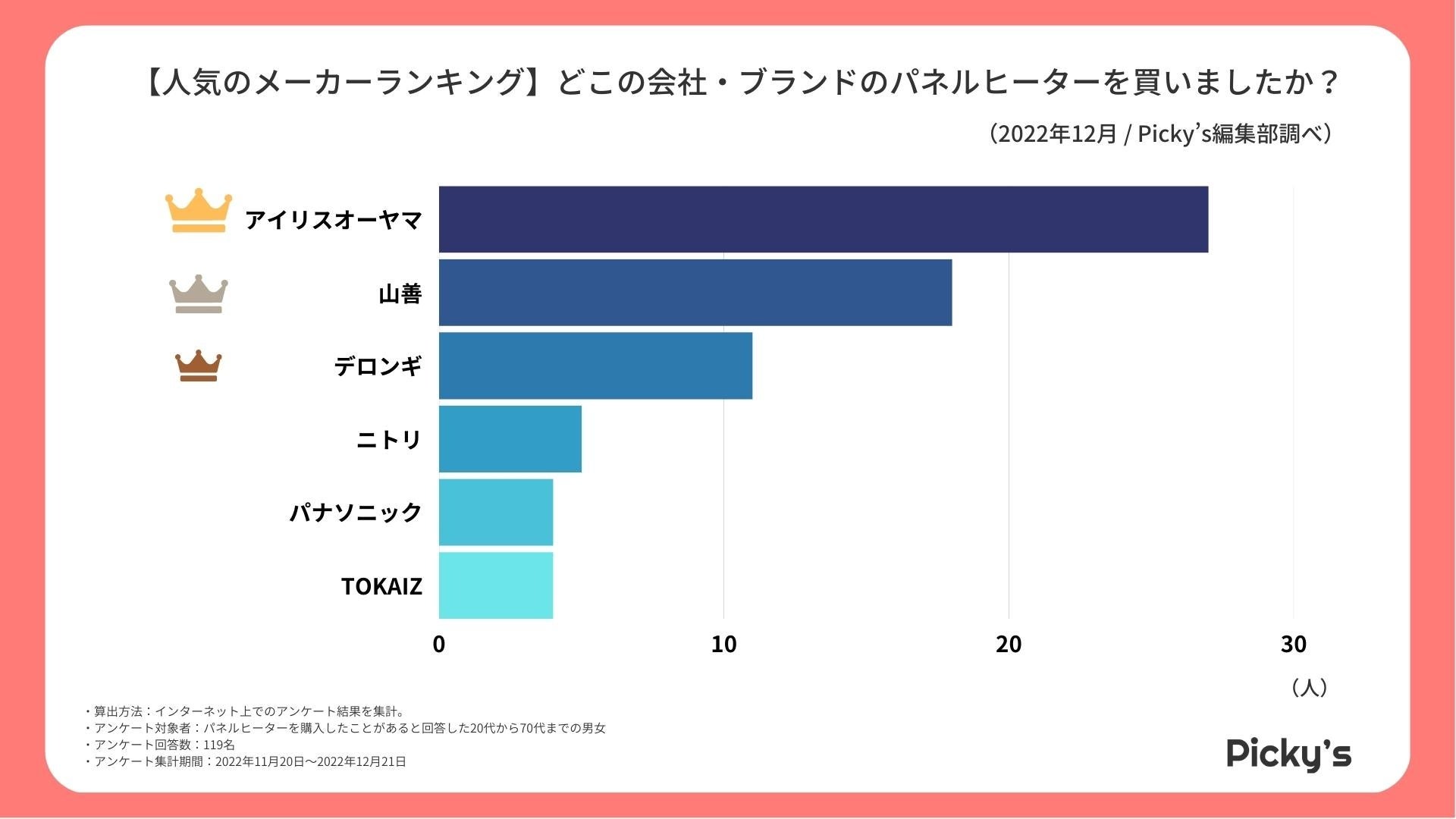 このたびPicky’s(https://rentry.jp/note/)では、パネルヒーターを買う際に意識していることや人気のメーカー・ブランドなどをインターネット上でアンケート調査を行い、ランキングを作成いたしましたので発表いたします。