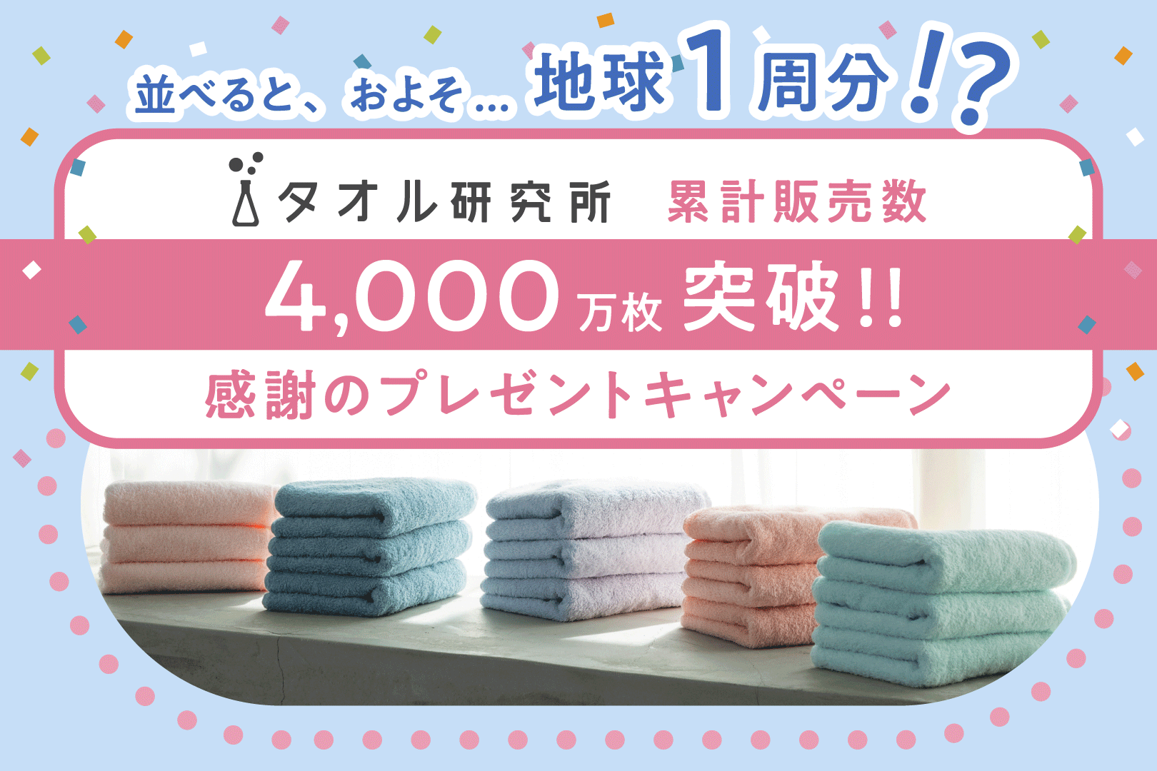 「タオル研究所」累計販売数4,000万枚を突破!感謝のプレゼントキャンペーンを開催