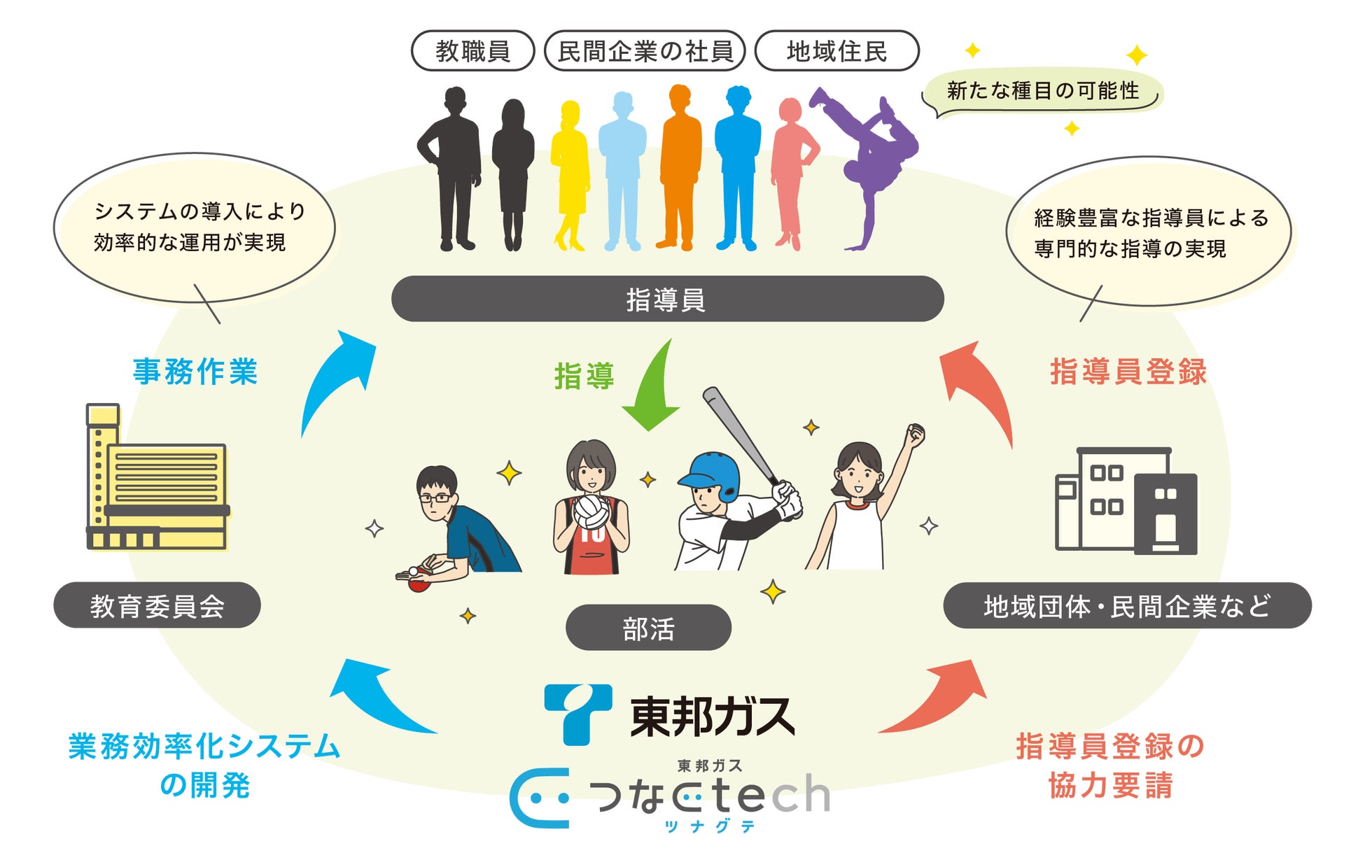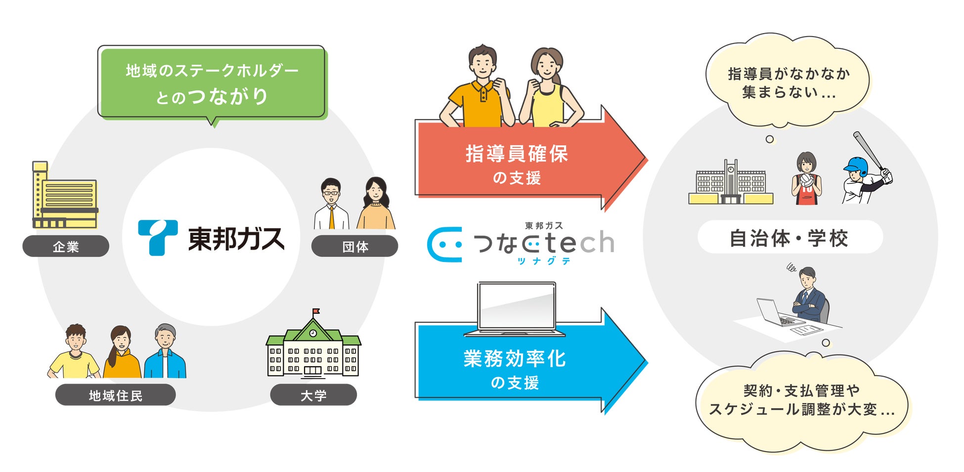 私たち東邦ガスグループは、「持続可能な社会の実現をリードする企業グループ」を目指し、「社会課題解決の推進」を重要テーマに掲げております。その一環として、昨年5月に自治体向けソリューションサービス「東邦ガス つなぐtech(ツナグテ)」を立ち上げ、地域課題解決に向けた取り組みを進めてまいりました。そうした中、尾張旭市教育委員会から、部活動改革に関する課題解決の相談を受けたことをきっかけに、当社としてこの地域課題の解決に取り組むことを決定しました。
