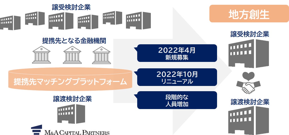 M&Aキャピタルパートナーズ株式会社(東京都千代田区・代表取締役社長 中村悟)は、4月8日、全国M&Aネットワーク構築に向けた、提携先マッチング事業の体制強化と本格稼働開始についてお知らせいたします。