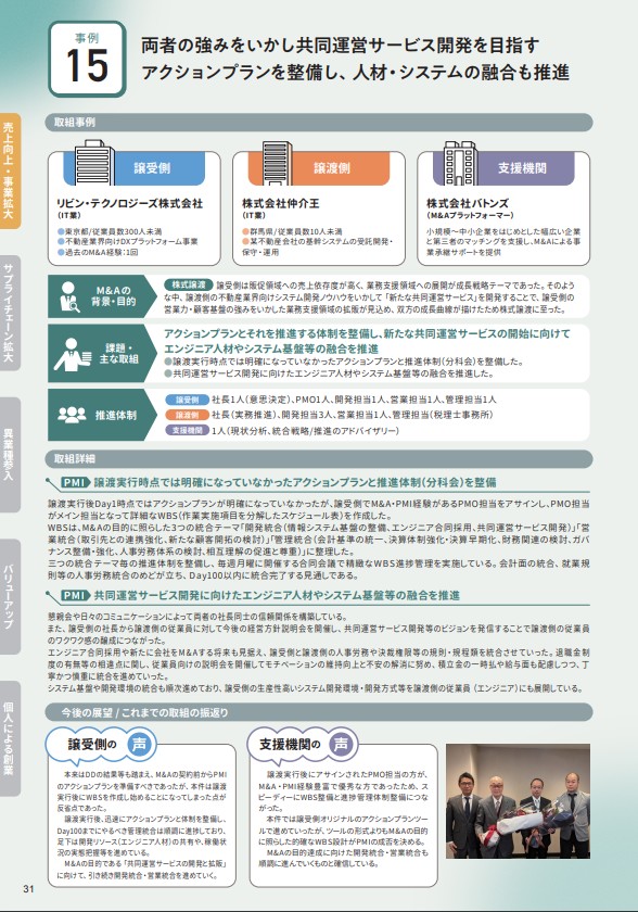 経済産業省中小企業庁の「PMI取組事例集」掲載に関するお知らせ