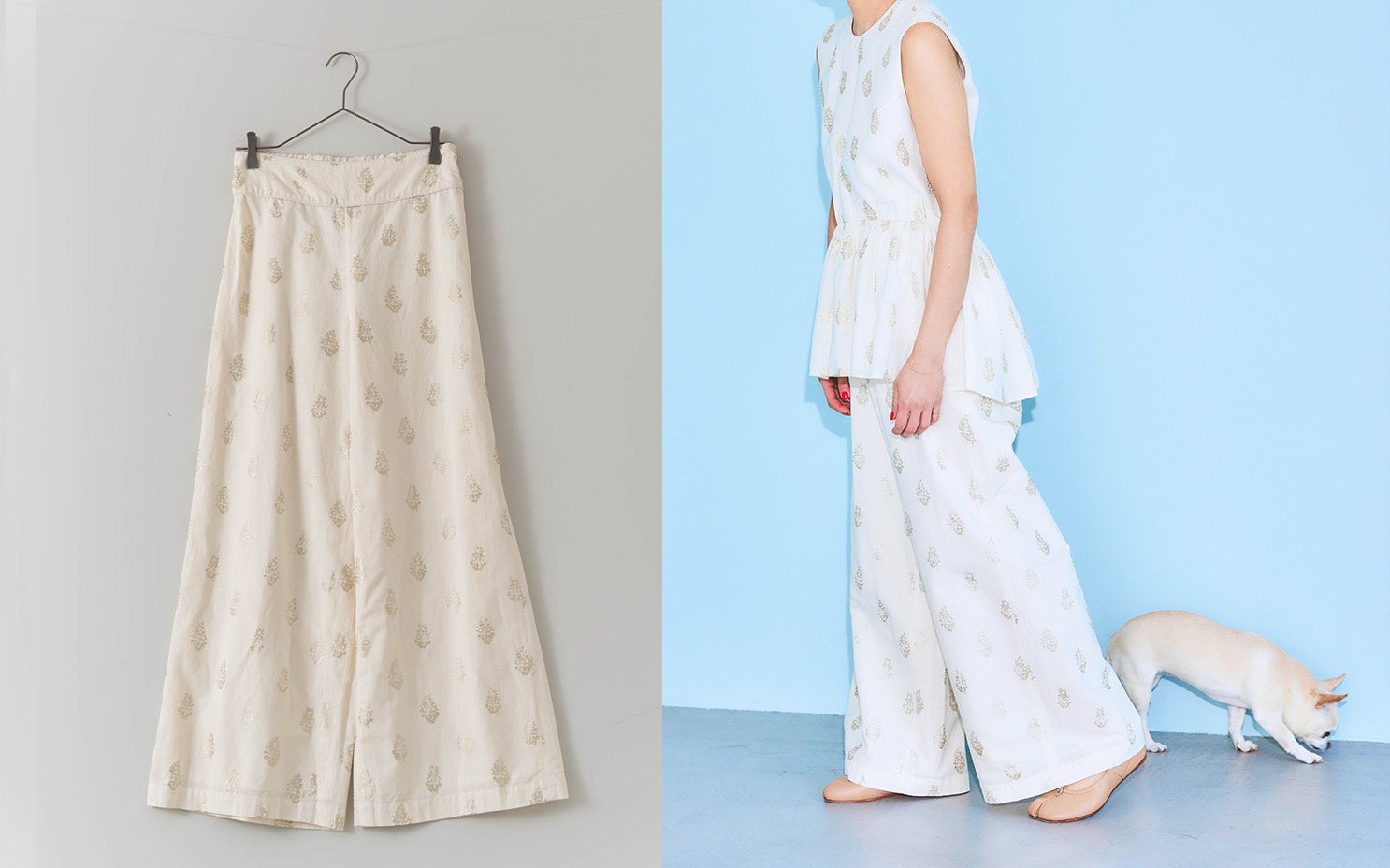 〈COTTON LINEN FOIL PRINT PANTS (ECRU) ¥26,400〉