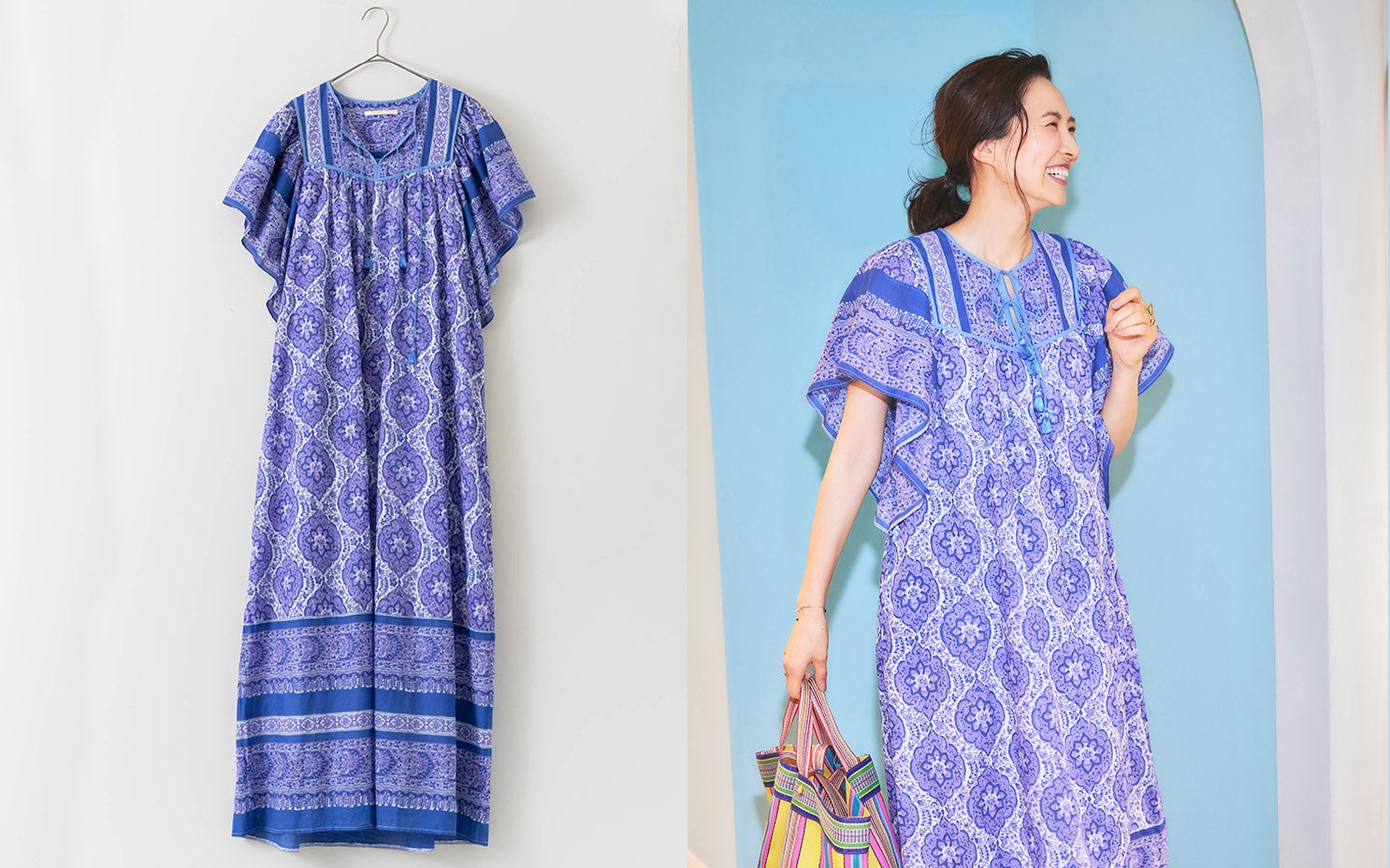 同型のドレス。今回はヌキテパらしいエスニック柄も展開。