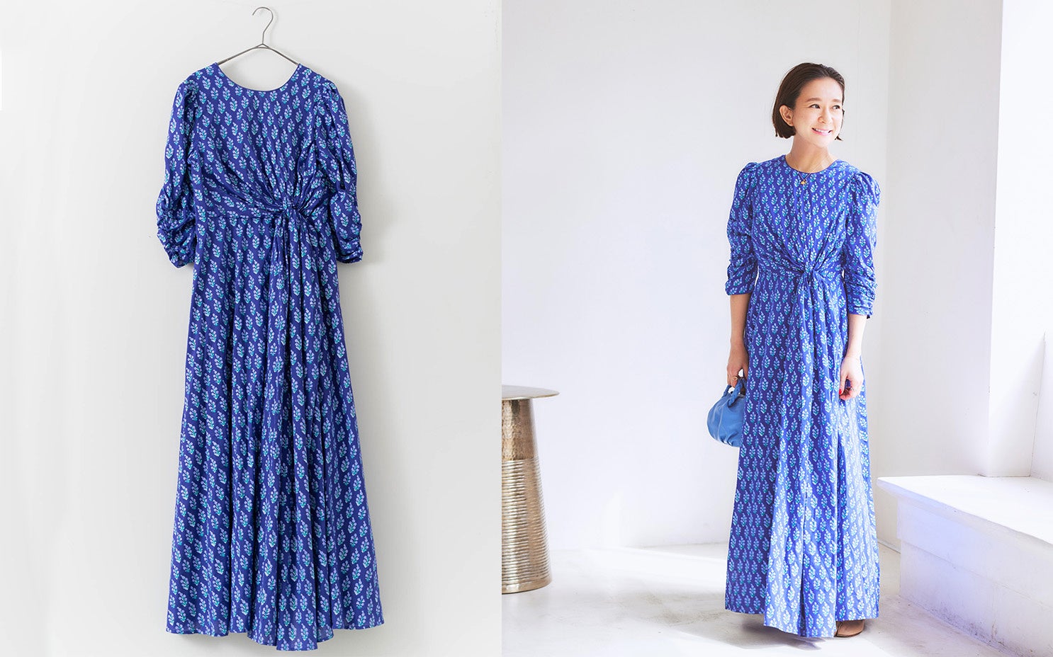 〈COTTON VOILE ETHNIC PRINT TWISTED WAIST DRESS (ROYAL) ¥28,600〉