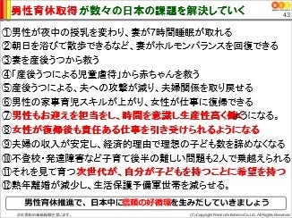 今回提供した当社の「男性育休時代のマネジメントセミナー」は、代表・小室淑恵より、男性の育児休業者を支援することの重要性やパタニティ休業の社会的意義、「休む人」の存在で属人化が解消される先進的な実例、チームビルディングの方法などを伝え、負担が増えると思われがちな休業こそむしろビジネス上の利点が多いことへの理解促進をサポートするものです。