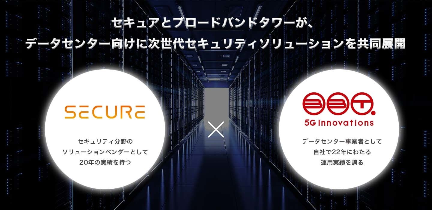 このような背景のもと、セキュリティ分野のソリューションベンダーとして20年の実績を持つセキュアと、データセンター事業者として自社で22年にわたるデータセンター運用実績を誇るブロードバンドタワーは、それぞれの技術やノウハウを持ち寄り、データセンターの新時代に向けて、新たなセキュリティソリューションを共同で開発・展開することといたしました。