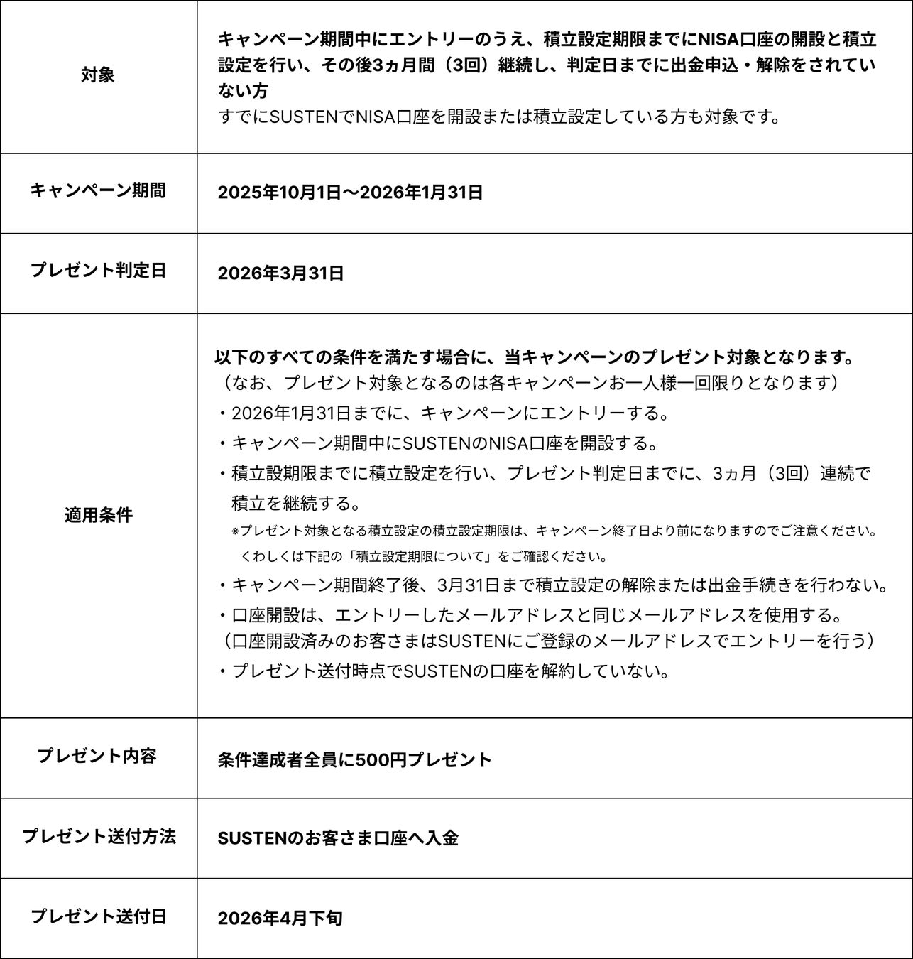 キャンペーンページURL:https://laboratory.susten.jp/special/2025-nisa-campaign