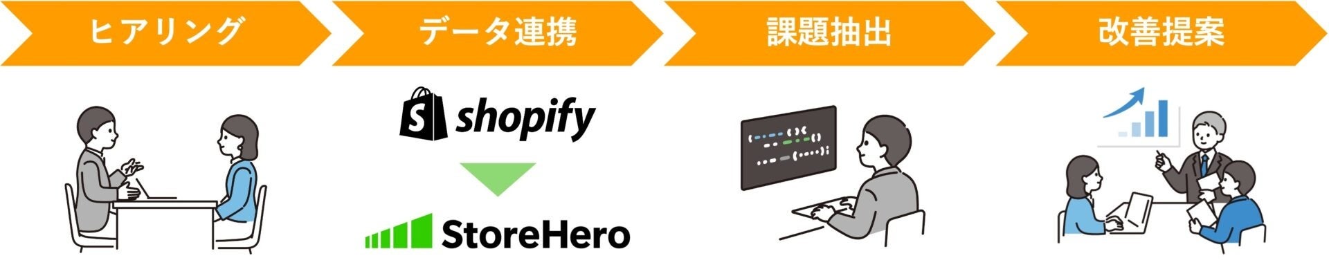 StoreHeroの無料ストア診断サービスでは、以下のポイントを中心に、現状のオンラインストアの課題を分析し、改善策を提案します。