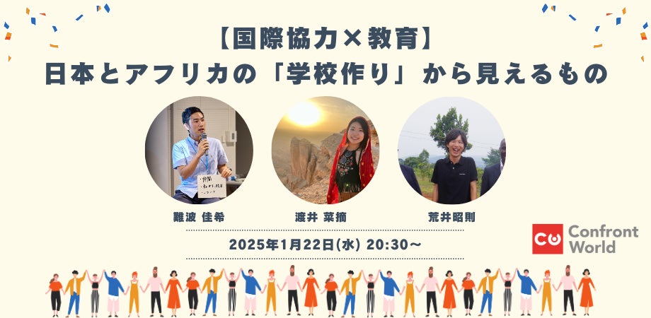 特定非営利活動法人コンフロントワールド(代表理事:荒井昭則)は、、日本とアフリカで学校作りに携わったゲストが、学校や教育にまつわる広い視点から対談を行うオンラインイベントを開催いたします。