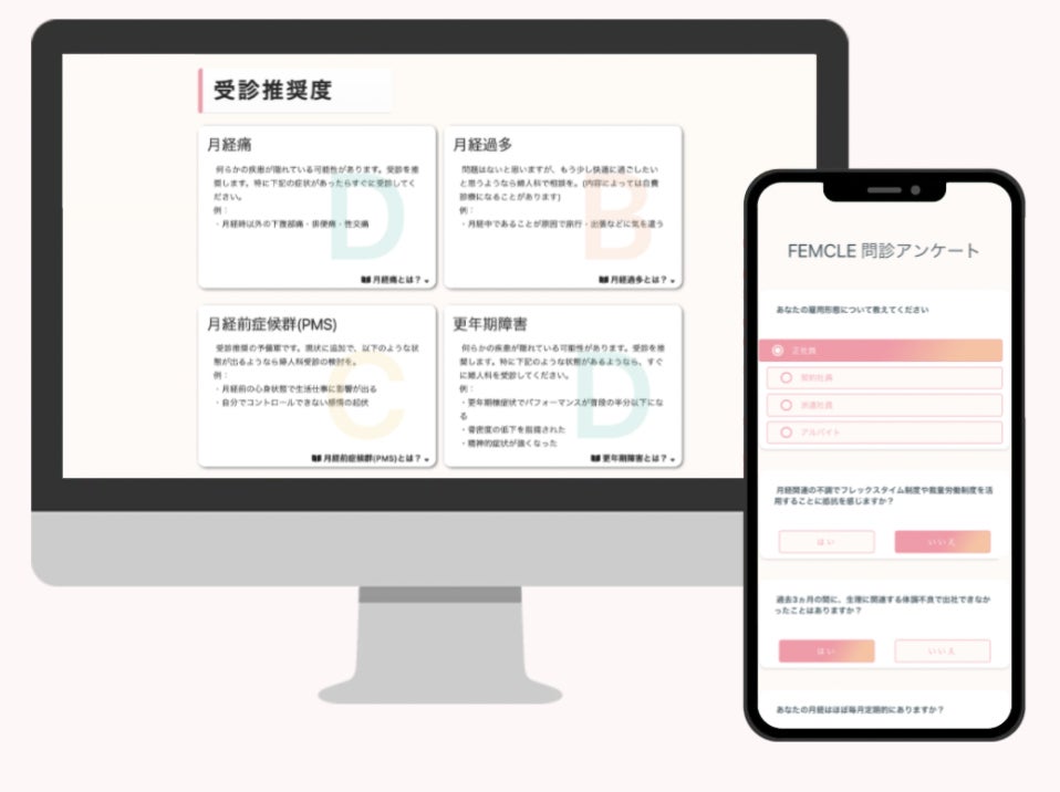 - きづき、まなび、医療につながる法人向けサービス「FEMCLE」
